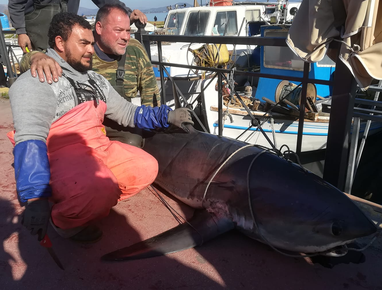 Η ψαριά έγινε χθες και το τεράστιο, για τα συνήθη δεδομένα, ψάρι αντιμετωπίστηκε με δέος από όσους έτυχε να βρίσκονται εκείνη τη στιγμή στο λιμάνι.