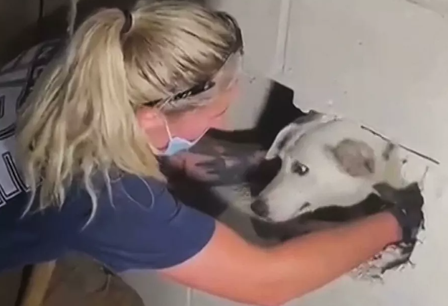 Αυτή είναι η στιγμή που πυροσβέστες έσπασαν έναν τοίχο για να σώσουν ένα σκύλο που είχε παγιδευτεί για πέντε ολόκληρες ημέρες και τον επανένωσαν με τους ιδιοκτήτες του.
