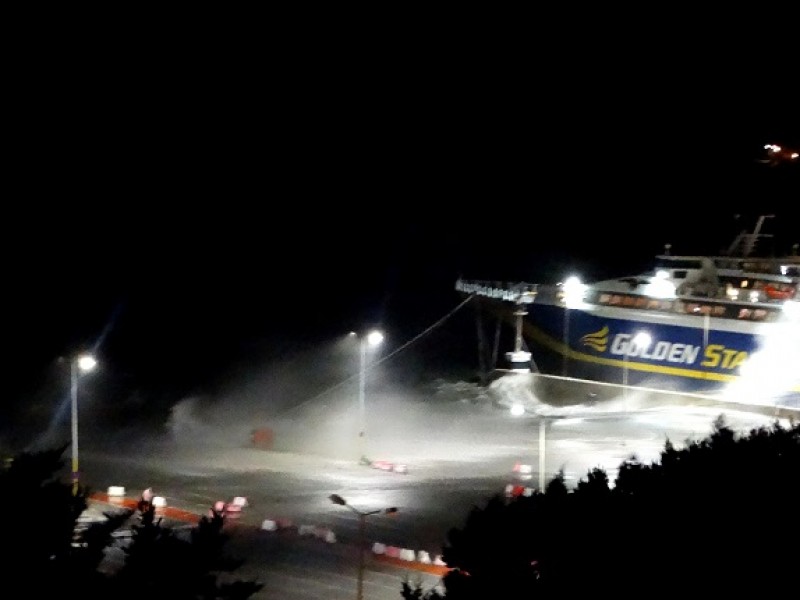 Όπως φαίνεται στο βίντεο το πλοίο προσπαθεί να κρατηθεί δεμένο, ενώ οι άνεμοι φτάνουν και τα 10 μποφόρ.