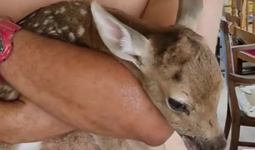 Αν μη τι άλλο, όμως, υπήρξε και μια στιγμή ελπίδας, χαράς, χαμόγελων. Ήταν όταν εθελοντές βρήκαν μέσα στη φωτιά ένα νεογέννητο ελαφάκι το οποίο διέσωσαν και περιέθαλψαν.