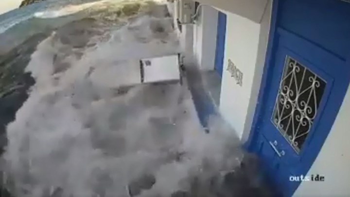Στο βίντεο διακρίνεται η ορμή με την οποία το νερό «εισβάλλει» στο οίκημα, από το οποίο μερικά λεπτά πριν είχαν βγει δύο άτομα, παρασέρνοντας τα πάντα.