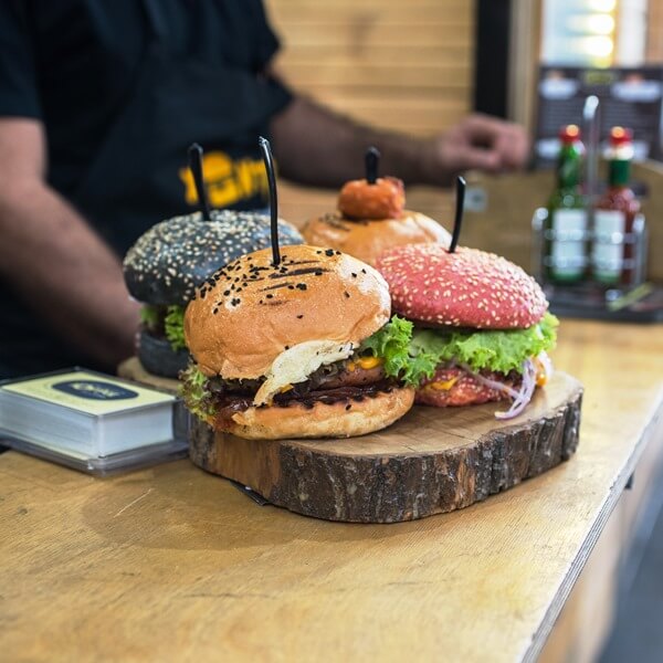 Το Burger “Παικταρά” με γουρουνοπούλα που περιέχει το κρέας της γουρουνοπούλας στη γάστρα με μπριάμ και όλα τα μυρωδικά, το Burger με καπνιστή προβατίνα δικής μας παραγωγής που την κόβουμε προσούτο και παλαιώνεται 25 ημέρες σε δρύινο βαρέλι με μαύρη μπύρα και το οποίο προσφέραμε 50-50% με μοσχαρίσιο κεμπάπ και το Burger με λουκάνικο γεμιστό με γραβιέρα Κρήτης.