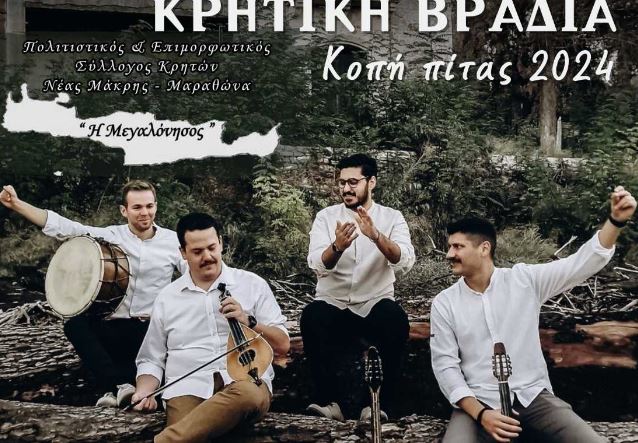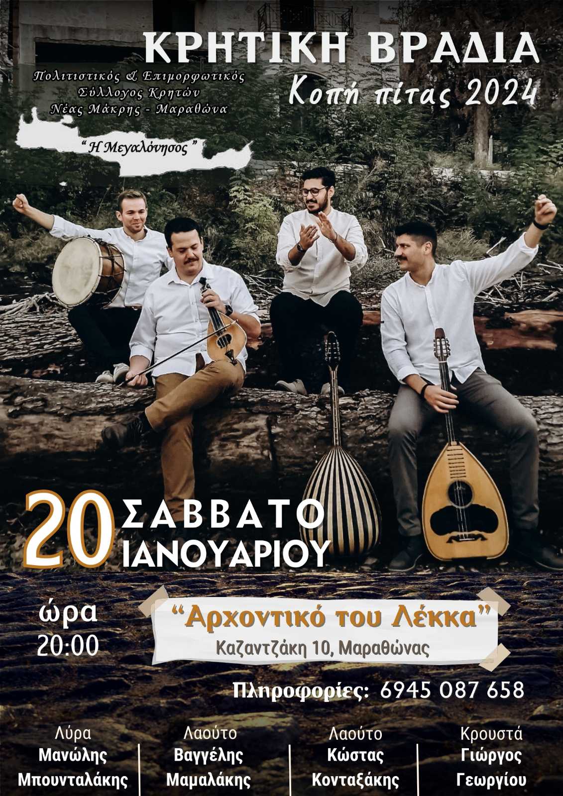 Το ερχόμενο Σάββατο 20 Ιανουαρίου θα πραγματοποιηθεί η κοπή της πρωτοχρονιάτικης πίτας του Συλλόγου Κρητών Νέας Μάκρης – Μαραθώνα.