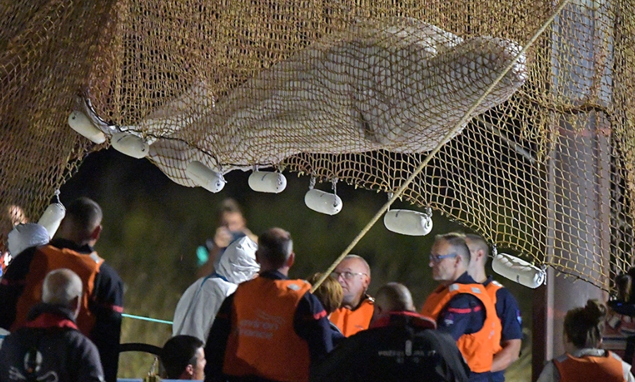 Γύρω στις 05:00 (ώρα Ελλάδας), έπειτα από έξι ώρες προσπαθειών, το κήτος βάρους σχεδόν 800 κιλών, η κατάσταση της υγείας του οποίου κρίνεται «πολύ ανησυχητική», υψώθηκε με δίχτυ από γερανό και αποτέθηκε σε μαούνα, όπου έσπευσαν να του προσφέρουν φροντίδες περίπου δέκα κτηνίατροι.