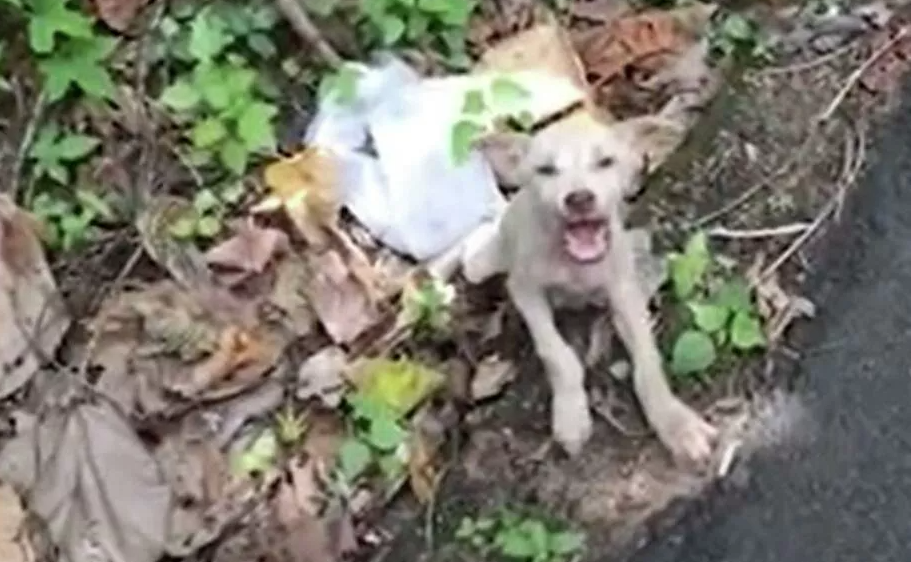 Η 42χρονη Πρου Μπάρμπερ βρήκε το σκυλάκι να κουτσαίνει και να κρύβεται στην άκρη του δρόμου να τρέμει από τρόμο.
