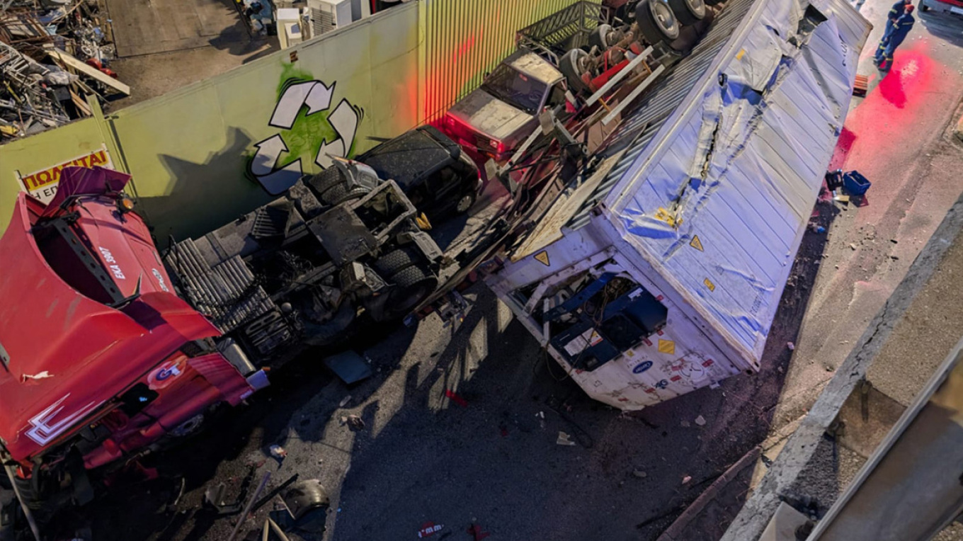 «Απ’ ότι είπαν από επάνω, ο οδηγός πρέπει να ερχόταν από τη Λαμπράκη και το έκανε ευθεία, δεν έχει φρεναρίσματα κάτω και έφυγε κατευθείαν κάτω. Δεν νομίζω να είχε αναπτύξει μεγάλη ταχύτητα, αλλά είναι 40 τόνους αυτό», συμπλήρωσε.