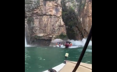 Πελώριο κομμάτι του επιβλητικού όγκου βράχων ξαφνικά αποκολλήθηκε από το φαράγγι κι έπεσε πάνω σε σκάφη που έπλεαν στα πράσινα νερά της λίμνης Φούρνας, στην περιοχή Καπιτόλιου, στην πολιτεία Μίνας Ζεράις.
