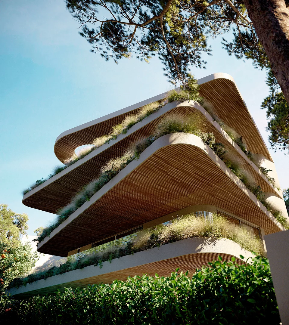 Το κτίριο σχεδιάστηκε με τρόπο ώστε να ενσωματώνεται στο φυσικό περιβάλλον και σε αυτό συνετέλεσε και η υιοθέτηση της καμπύλης. Αναπτύσσεται σε τέσσερα επίπεδα πάνω από το έδαφος με τους εξωτερικούς χώρους διαβίωσης, το ισόγειο και τα μπαλκόνια να είναι διατεταγμένα έτσι ώστε να παρέχουν οπτική προστασία στους ενοίκους. Ταυτόχρονα δημιουργούνται πολλαπλά σημεία εστίασης και οπτικές γωνίες στους εσωτερικούς και εξωτερικούς χώρους. Ο κτιριακός πυρήνας του κτιρίου παραμένει ορθολογικός και δομικά άθικτος από τον παιχνιδιάρικο σχεδιασμό των εξωστών. Παρέχει λειτουργικό χώρο για τρία οροφοδιαμερίσματα τριών υπνοδωματίων και ένα μικρότερο στούντιο στο ανώτερο επίπεδο του κτηρίου.