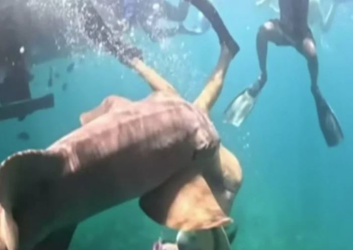 Την ίδια ώρα, οι δύο φίλες της και ο ξεναγός παρακολουθούν έντρομοι. Η 36χρονη στάθηκε εξαιρετικά τυχερή, έχοντας ωστόσο σοβαρά σημάδια από τα δόντια του καρχαρία στον μηρό της.
