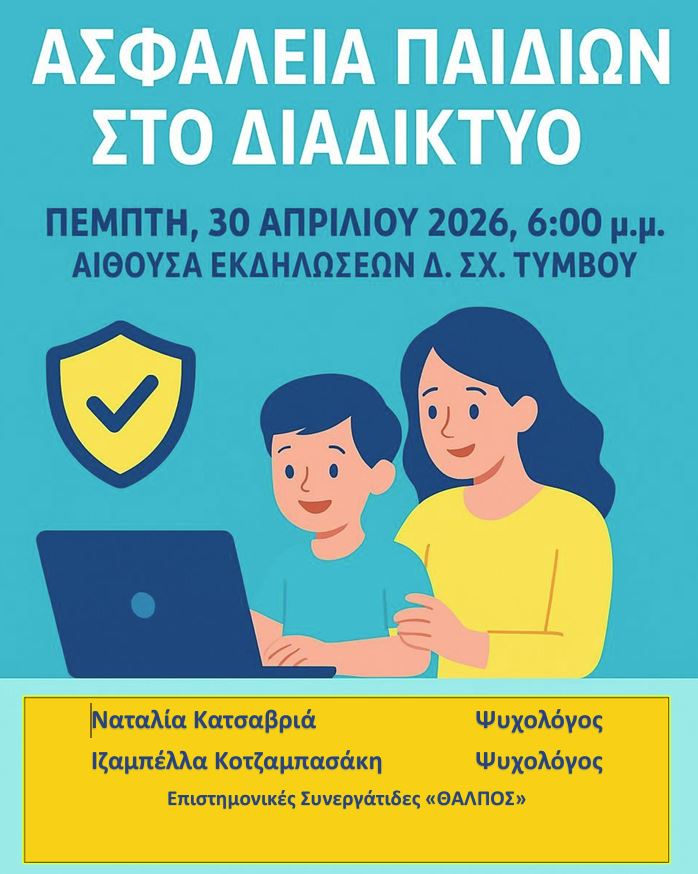 Θέμα του σεμιναρίου είναι: «Ασφάλεια στο Διαδίκτυο», ένα ζήτημα εξαιρετικά επίκαιρο και σημαντικό για την καθημερινότητα των παιδιών μας.