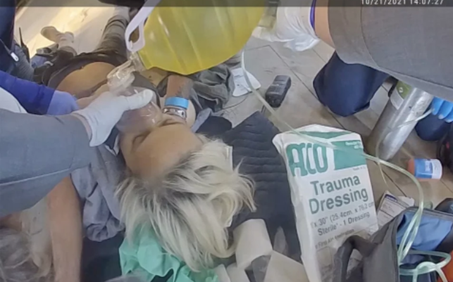 Τις απέλπιδες προσπάθειες των τραυματιοφορέων να σώσουν την κινηματογραφίστρια Χαλίνα Χάτσινς, μετά τον πυροβολισμό από τον Άλεκ Μπάλντουιν, κατέγραψε κάμερα.