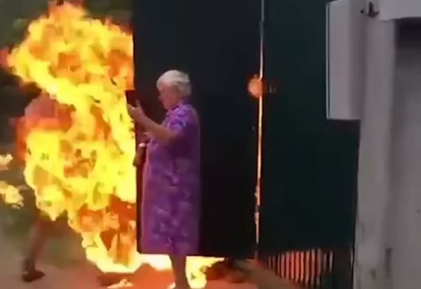 Ο ηλικιωμένος, ωστόσο, είχε άλλα σχέδια. Επιτέθηκε με φλογοβόλο στον γείτονά του και παρότι δεν τον σκότωσε, του άφησε εγκαύματα στο 60% του σώματός του. Αλλά δεν σταμάτησε εκεί. Εκτόξευσε κι ένα καμάκι το οποίο καρφώθηκε στον λαιμό μιας γυναίκες με αποτέλεσμα και αυτή να χρειαστεί να μεταφερθεί εσπευσμένα σε νοσοκομείο για να της το αφαιρέσουν.