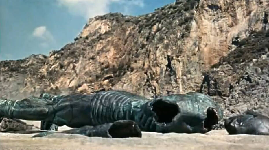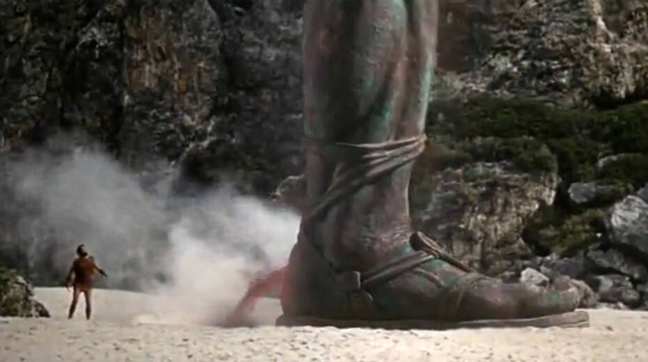 Ο Ιάσωνας και οι άντρες του έδεσαν στο νησί και ήρθαν αναγκαστικά αντιμέτωποι με τον χάλκινο γίγαντα, ο οποίος προσπάθησε να τους κρατήσει σε ασφαλή απόσταση με τους βράχους του.