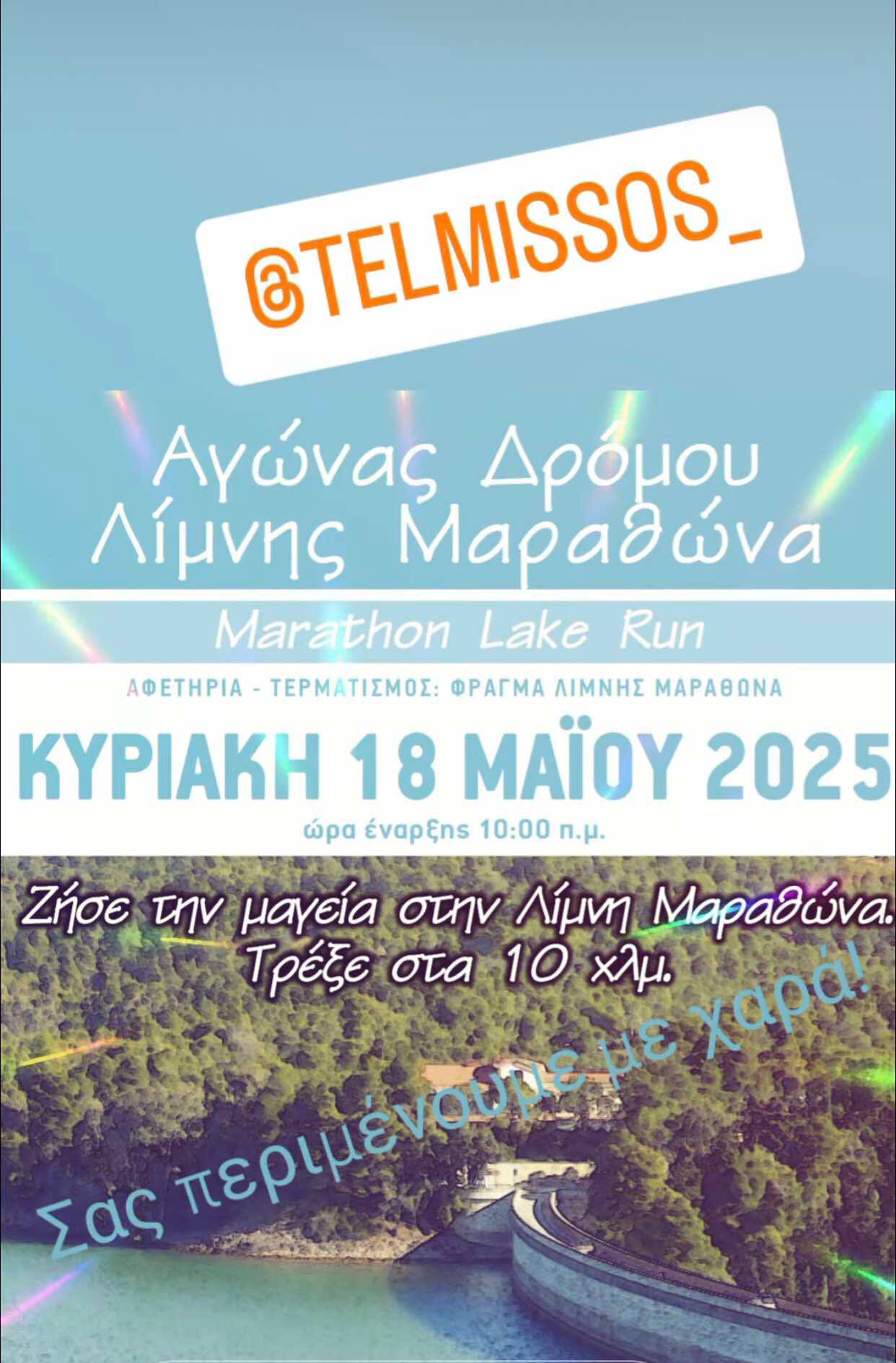 Πρόκειται για τον Αγώνα Δρόμου Λίμνης Μαραθώνα που έχει ως αφετηρία και τερματισμό το Φράγμα και διοργανώνεται από τον Τελμησσό για 11η χρονιά.