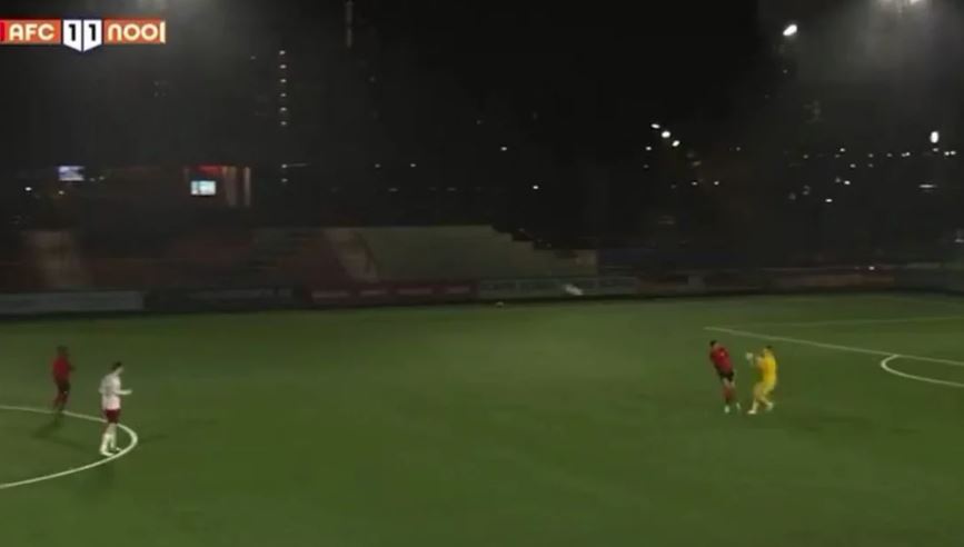 Zien is geloven. Lars Jansen maakt voor het eerst een doelpunt als keeper. Zijn lange trap viel gedragen door de wind binnen en betekende de 1-2 voor Noordwijk, dat uiteindelijk met 1-3 won bij AFC.#afcnoo