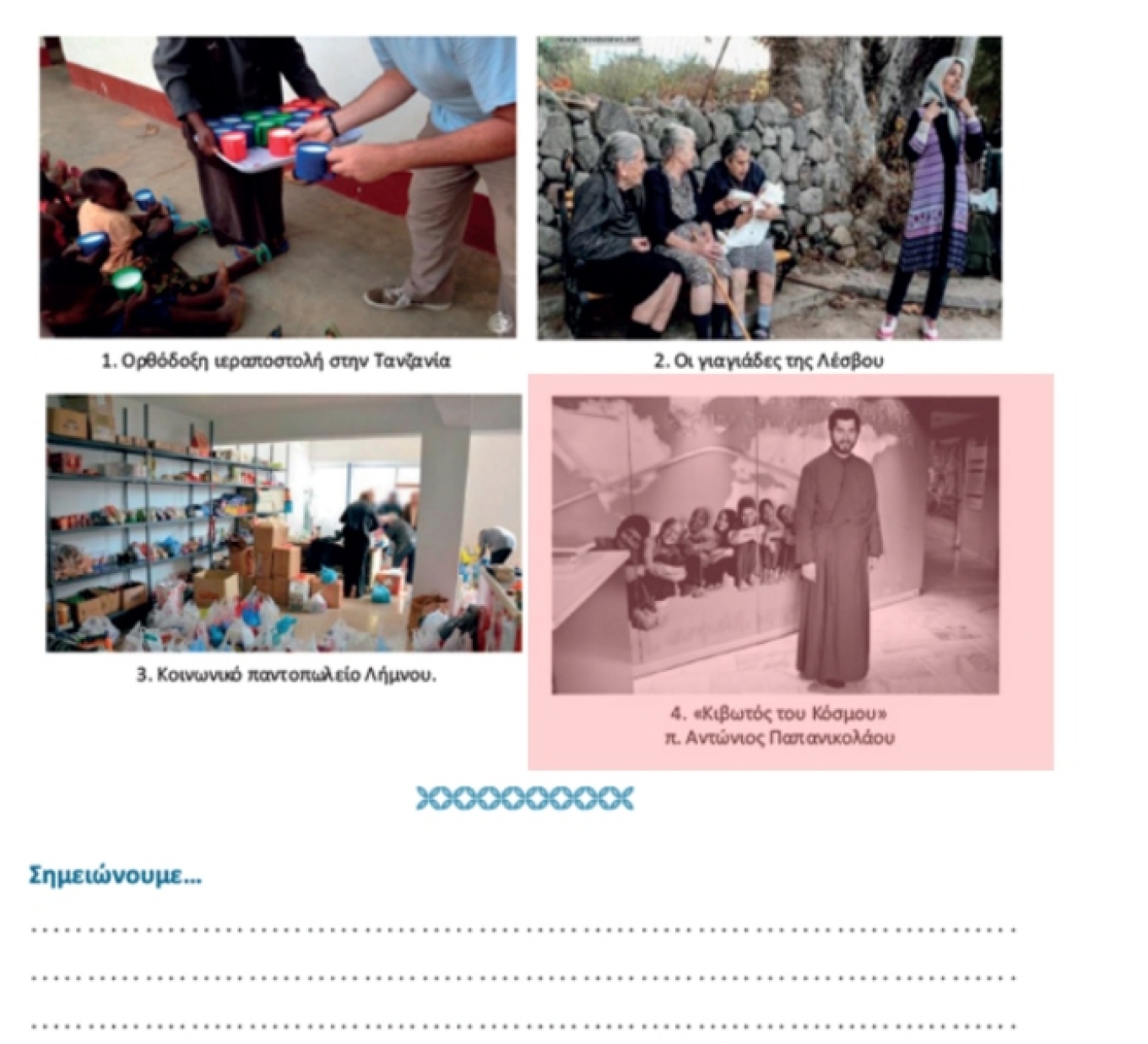 Στο βιβλίο ΟΡΘΟΔΟΞΗ ΠΙΣΤΗ ΚΑΙ ΛΑΤΡΕΙΑ, της Α’ Λυκείου, στη σελίδα 152 αφαιρείται η εικόνα και η λεζάντα που τη συνοδεύει: «4. «Κιβωτός του Κόσμου» π. Αντώνιος Παπανικολάου»