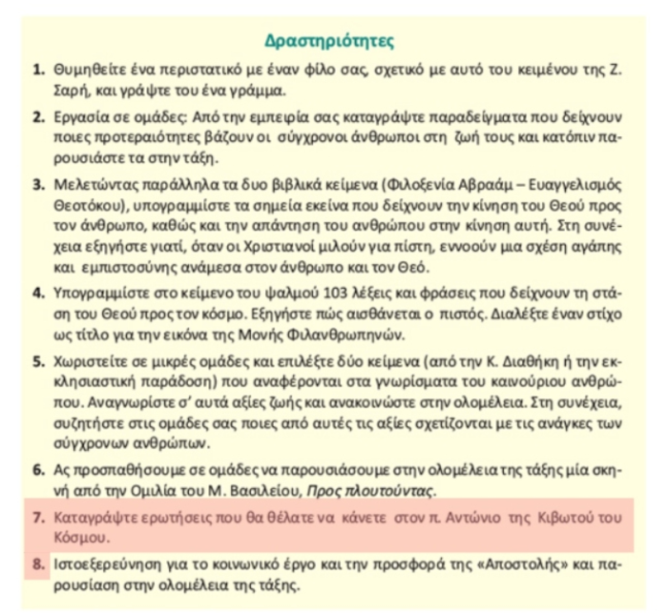 Στη σελίδα 23 του ίδιου βιβλίου, διαγράφεται η δραστηριότητα: «7. Καταγράψτε…Κόσμου»