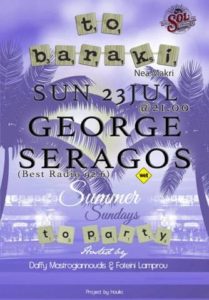 To_baraki παρουσιάζει #to_party με guest Dj τον γνωστό ραδιοφωνικό παράγωγό του Best Radio 92.6FM Γιώργο Σεράγο (George Seragos) την Κυριακή 23/7 που μετά τις 21.00 θα μας ξεσηκώσει με τις μουσικες του επιλογές !! Όπως κάθε Κυριακή #sol_day 1+1 Sol δώρο!