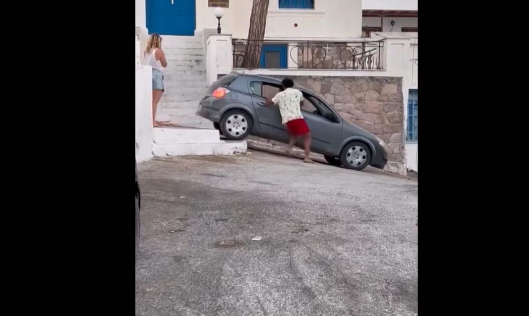 Μολονότι η γωνία λήψης δεν μας επιτρέπει να διακρίνουμε με ακρίβεια το μήκος των σκαλιών που κατέβηκε το αυτοκίνητο, γνωρίζοντας πώς είναι διαμορφωμένοι οι πεζόδρομοι στις κατοικημένες περιοχές των νησιών, μπορούμε θεωρητικά να υποθέσουμε πως πρόκειται για μια αρκετά μεγάλη απόσταση.