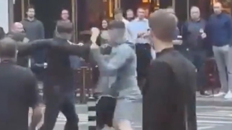 Οι σερβιτόροι από το μαγαζί αντέδρασαν και υπερασπίστηκαν την κοπέλα, μόνο που η παρέα των ρατσιστών ήθελε να το παίξει σκληρή. Ξεκίνησαν μεσ΄ τη μέση του δρόμου να πλακώνονται, με τους σερβιτόρους να τσακίζουν την παρέα, που ήταν αριθμητικά και περισσότεροι.