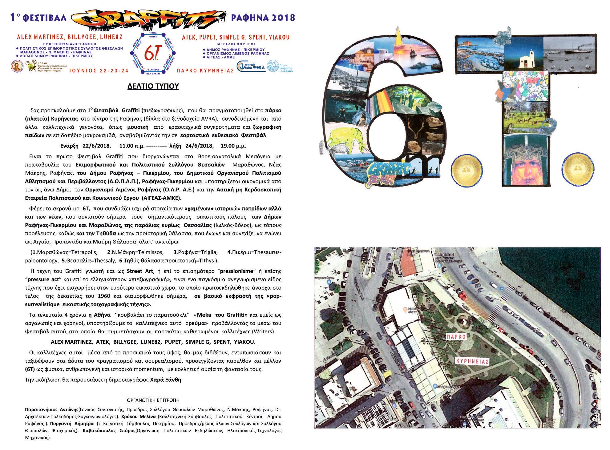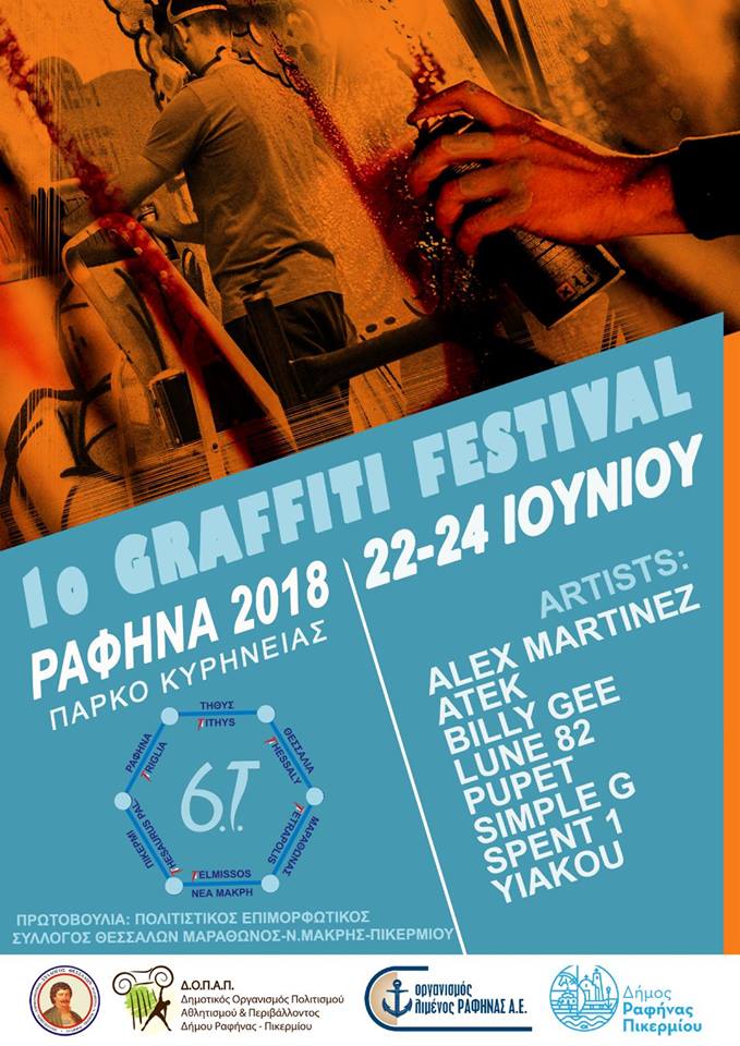 Τριήμερο φεστιβάλ Graffiti διοργανώνει ο Επιμορφωτικός & Πολιτιστικός Σύλλογος Θεσσαλών, Μαραθώνος, Νέας Μάκρης, Ραφήνας στο πάρκο Κυρήνεια στη Ραφήνα από την Παρασκευή 22 Ιουνίου, στις 11 το πρωί, έως την Κυριακή 24 Ιουνίου, στις 7 το απόγευμα.
