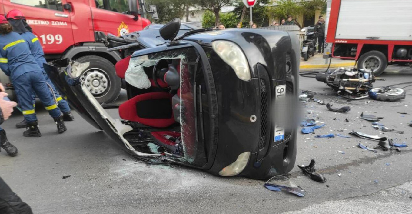 Η σύγκρουση ήταν σφοδρή, με αποτέλεσμα ο οδηγός της μηχανής να εκτιναχθεί και να καταλήξει μέσα στην καμπίνα του οχήματος, το οποίο τούμπαρε. Στο σημείο έσπευσαν ασθενοφόρα και οχήματα της Πυροσβεστικής.