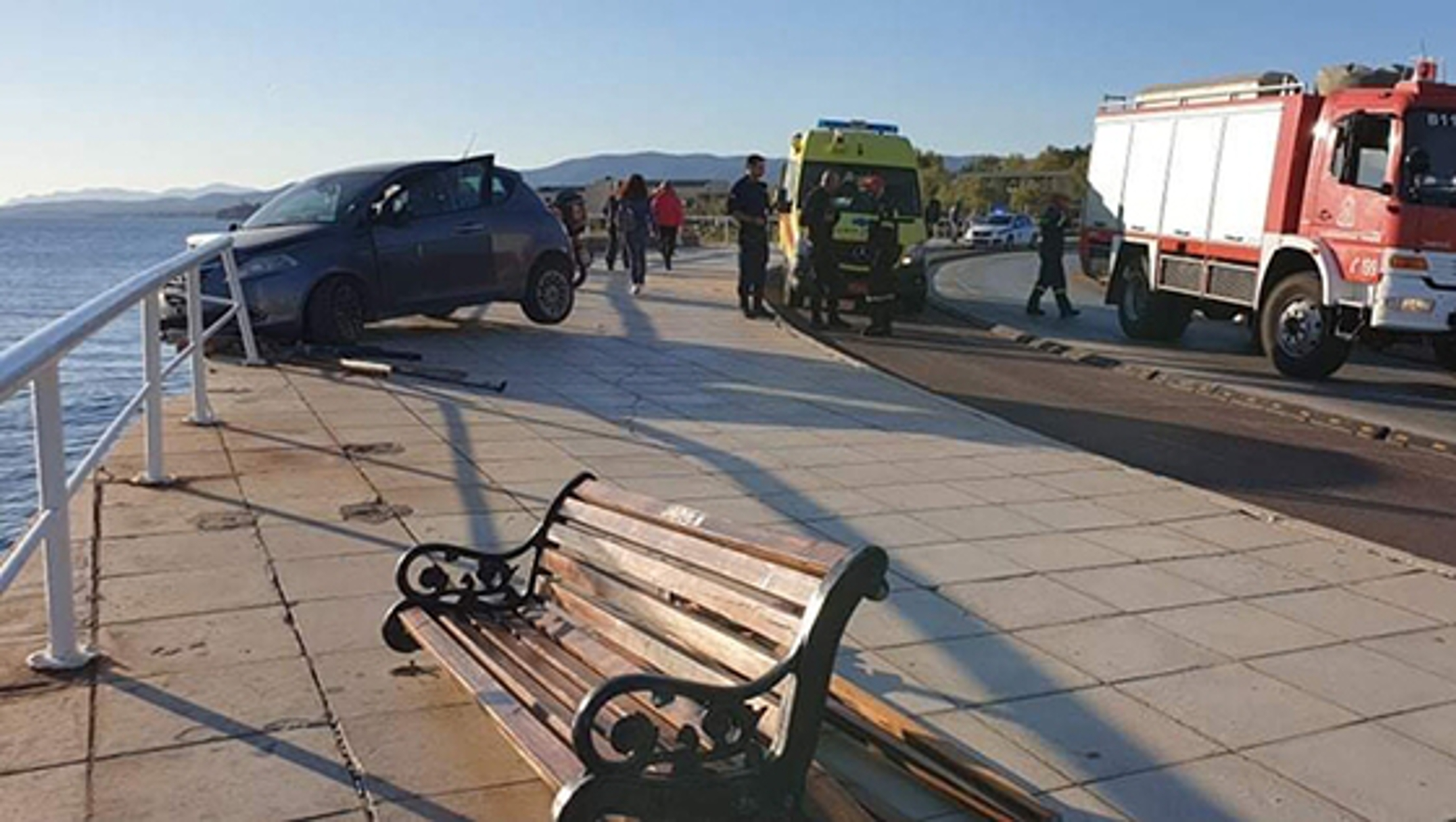 Το αυτοκίνητο με την ταχύτητα που είχε ξήλωσε το παγκάκι, όπως μπορείτε να δείτε και στο βίντεο και… εκσφενδόνισε την άτυχη γυναίκα στην θάλασσα, όπου τραυματίστηκε κατά την πτώση της.