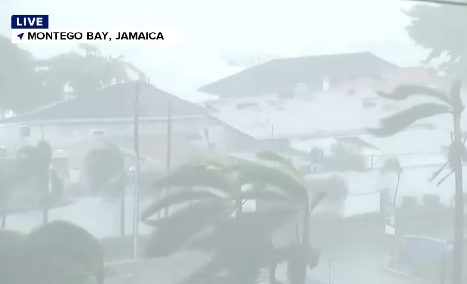 Σύμφωνα με τα τελευταία δορυφορικά δεδομένα, το «μάτι» του τυφώνα άρχισε να κινείται πάνω από τις νότιες ακτές της Τζαμάικας. Η ζώνη του ματιού (eyewall), όπου καταγράφονται οι ισχυρότεροι άνεμοι – έως και 290 χιλιόμετρα την ώρα -, αναμένεται να προκαλέσει εκτεταμένες καταστροφές καθώς περνάει πάνω από το νησί.