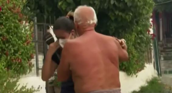 Ο άνθρωπος που αντιμετωπίζει αναπνευστικά προβλήματα με δυσκολία στην ομιλία προσεγγίζει μόνος του τη δημοσιογράφο. Εκείνη του προσφέρει μάσκα την ώρα που του έχει κοπεί η ανάσα για να βρέχει από το πρωί το σπίτι του, όπως λέει ο ίδιος. Στο τέλος ο ηλικιωμένος άνδρας την ευχαριστεί, ενώ κλαίει από συγκίνηση. Το ίδιο κάνει και η ρεπόρτερ του ΟΡΕΝ.