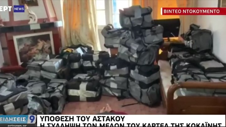 Η ΕΡΤ δημοσίευσε βίντεο – ντοκουμέντο από την έφοδο των Αρχών στο σπίτι, όπου υπήρχε η τεράστια ποσότητα ναρκωτικών, που υπολογίζεται σε 1,2 τόνους κοκαΐνης.