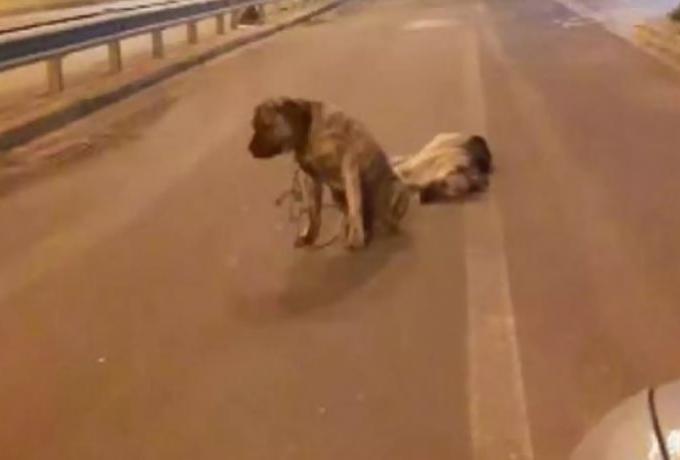 Ο σκύλος αντιλαμβάνεται ότι ο επίσης αδέσποτος φίλος του έχει σκοτωθεί, κατά πάσα πιθανότητα από διερχόμενο ΙΧ. Στέκεται δίπλα του και θρηνεί και δεν τον εγκαταλείπει όπως φαίνεται στο βίντεο που κατέγραψε η κ. Νίκη Μανωλάκη.
