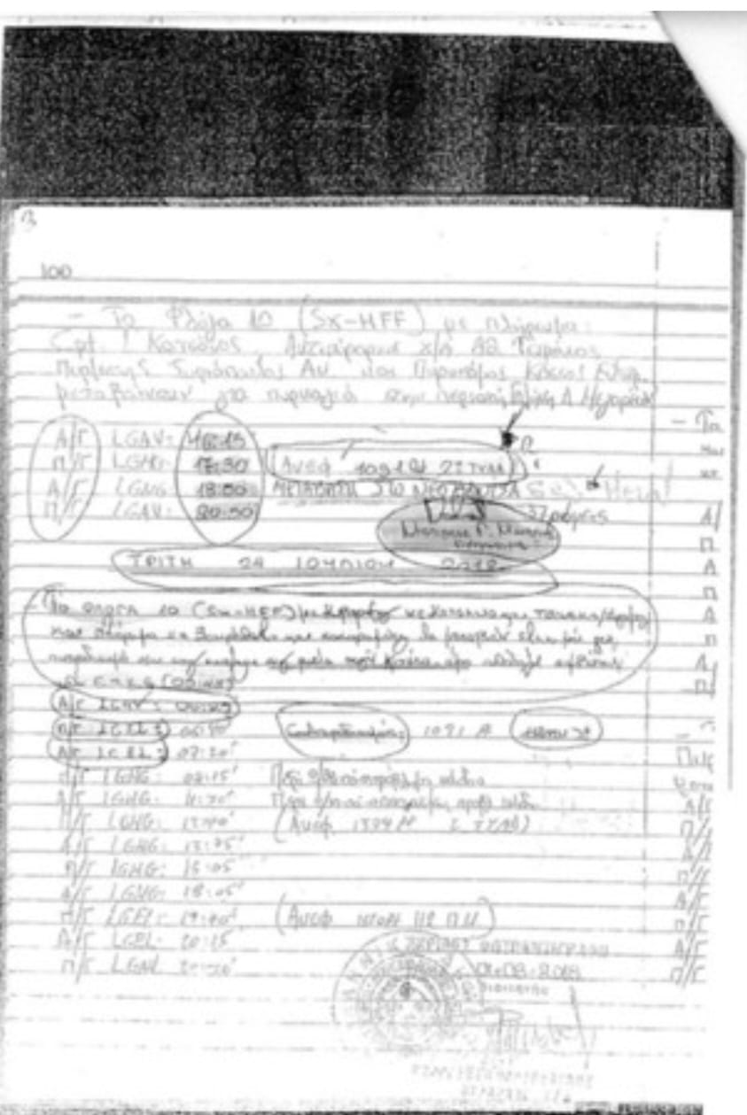 Μάρτυρας: Όσο καιρό είμαι στο Κέντρο Επιχειρήσεων, δεν είχα ακούσει ξανά τέτοιο νούμερο. Η εγγραφή στο ημερολόγιο έγινε αντιληπτή από εμένα. Η εγγραφή αυτή κατά τη γνώμη μου έγινε μετά τα δημοσιεύματα, που ενεπλάκη στην υπόθεση η ΥΕΜΣ.