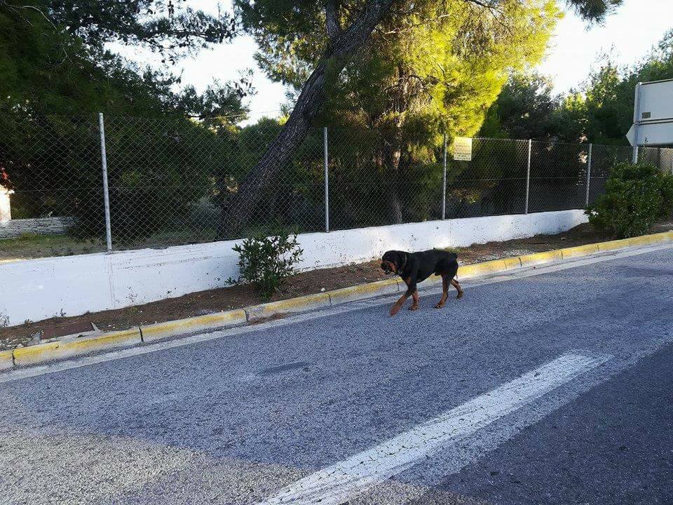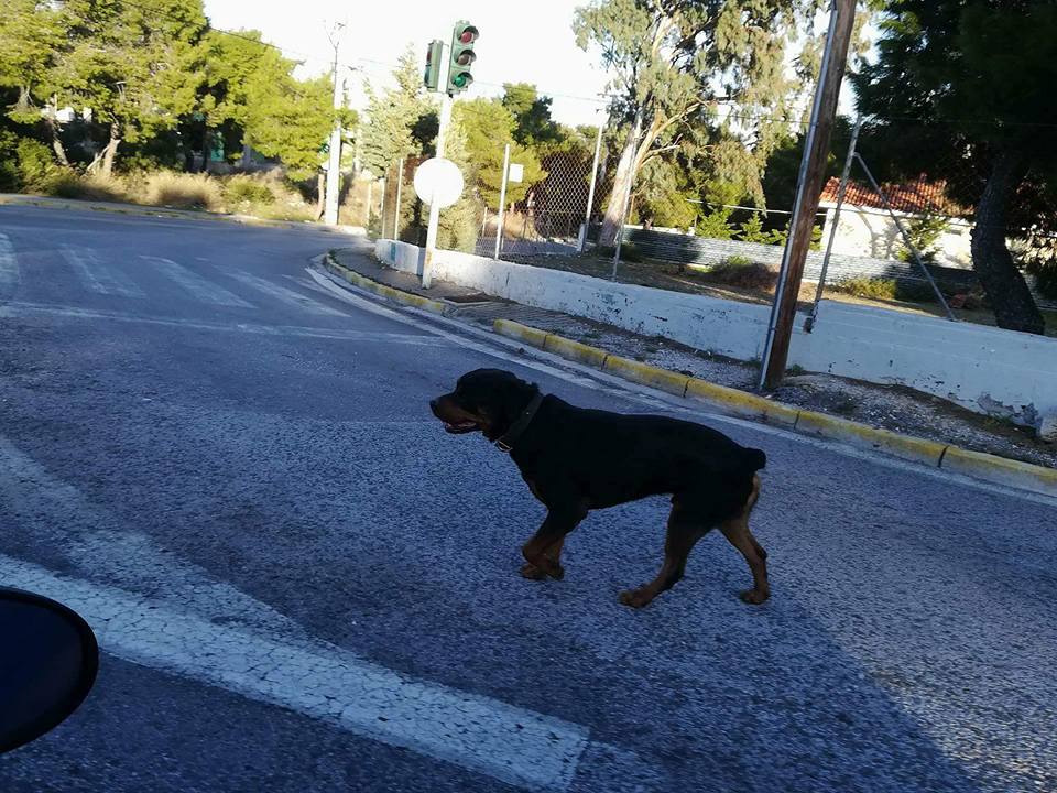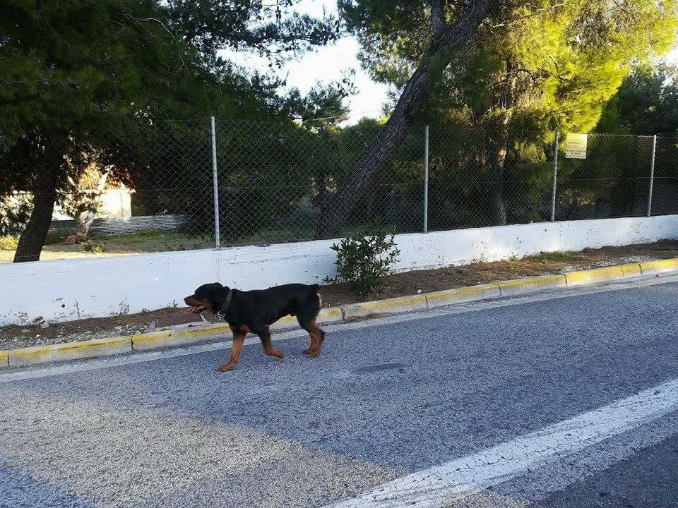 Δύο rottweiler κυκλοφορούν στη Λεωφ. Μαραθώνος στην περιοχή του Αγ. Ανδρέα – Μάτι. Και τα δύο σκυλιά φοράνε κόκκινο περιλαίμιο, ενώ πολύ πιθανό είναι να έχουν φύγει από το ίδιο σπίτι.