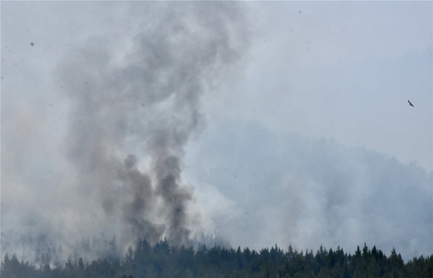 Η φωτιά έχει κάψει πολύ μεγάλη έκταση ενός πυκνού δάσους, ενώ οι ισχυροί άνεμοι που πνέουν στην περιοχή δυσχεραίνουν το έργο των πυροσβεστικών δυνάμεων.
