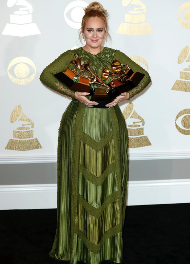 Η Αντέλ κέρδισε και τα πέντε βραβεία για τα οποία είχε προκριθεί, μεταξύ αυτών για το άλμπουμ της «25» αλλά και για το τραγούδι της «Hello».