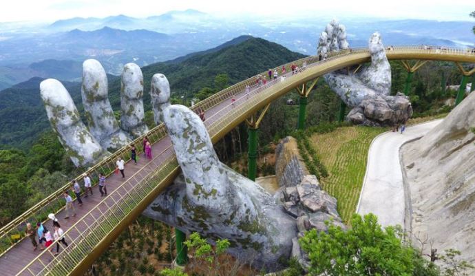 Οι φωτογραφίες από την χρυσή γέφυρα στους λόφους Μπα Να, λίγο έξω από τη Ντα Ναγκ του Βιετνάμ 🇻🇳 έγιναν viral αμέσως με το που κυκλοφόρησαν στο διαδίκτυο το 2018 και δικαίως καθώς πρόκειται για την πιο εντυπωσιακή γέφυρα στην ιστορία της Ασίας.
