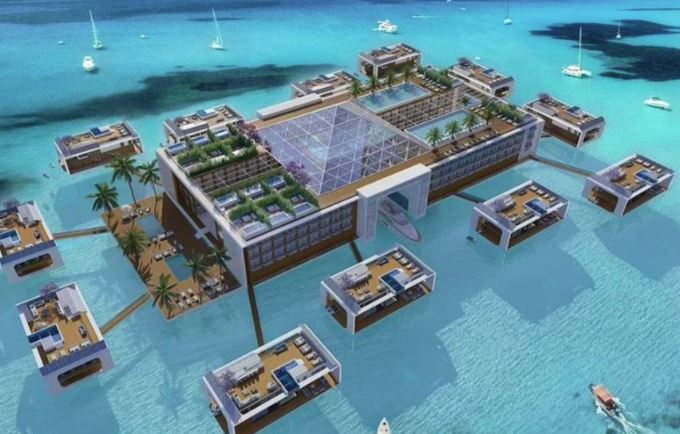 Το υπερπολυτελές θέρετρο θα επιπλέει και οι 12 βίλες που θα το «αγκαλιάζουν» θα μπορούν να αποσπαστούν από το κεντρικό ξενοδοχείο και να ταξιδεύουν μόνες τους σε διαφορετικά μέρη. Αυτές οι βίλες, που περιγράφονται ως «πολυτελή πλωτά σπίτια» από την ελβετική αλυσίδα ξενοδοχείων Kempinski, θα συνδέονται με το κεντρικό ξενοδοχείο των 156 δωματίων με ξύλινες πλατφόρμες.