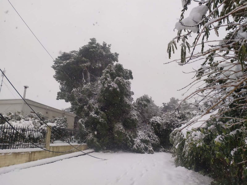 Δευτέρα πρωί. Στη Νέα Μάκρη η κακοκαιρία και η χιονόπτωση έχουν ήδη ξεκινήσει να προκαλούν τα πρώτα προβλήματα. Περίπου στις 12.00 το μεσημέρι το ρεύμα πέφτει στις οδούς Λεωνίδου και Λόφου στο Ζούμπερι.